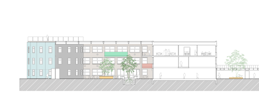 Naast een verbeterde functionaliteit en ruimtelijke ervaring van binnen en buitenruimte en het vinden van ruimte binnen de bestaande muren, stelt het nieuwe plan een functionele herverdeling voor, waarbij de praktijkruimten rond de nieuwe binnenplaats worden geplaatst en de theoretische klaslokalen in de buitenring van het gebouw. Het gemeenschapsaspect van het gebouw versterkt, waardoor spontane ontmoetingen tussen studenten van verschillende praktijken in het nieuwe hart van het gebouw worden gestimuleerd.