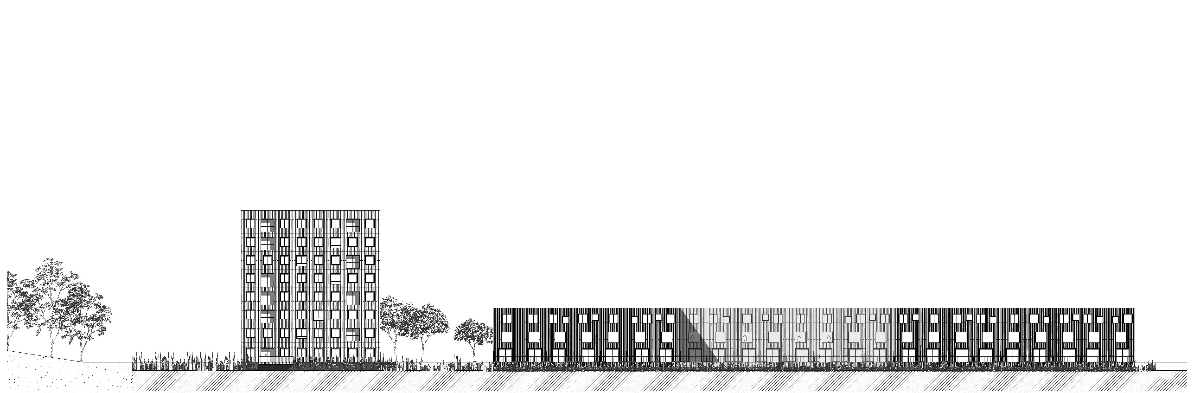 The low-rise buildings comprise 24 homes of 125 m² over three storeys, designed for flexible layouts and a strong relationship with the surrounding landscape. The tower contains 45 apartments of 60 m². All dwellings were sold within the category of ‘affordable housing’, with priority given to local residents to strengthen the social integration of the new plan and encourage housing mobility within the Bijlmer area as a whole.