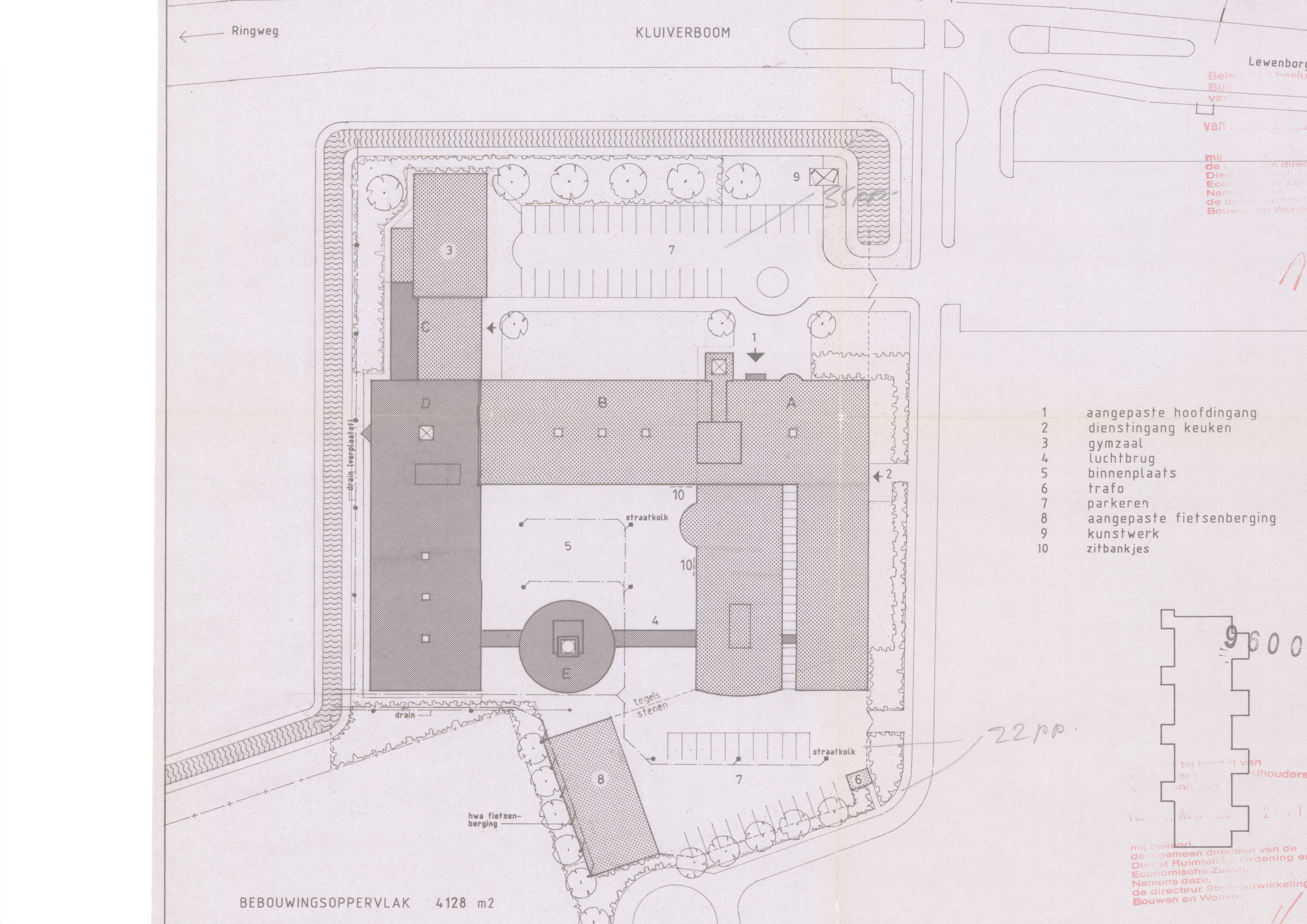 The Kluiverboom is an MBO school in Groningen (NL) established in 1989, where service providers such as hairdressers, cosmeticians and nurses learnt and practice their craft, as well as being provided general theoretical courses. The original building’s plan had a logic centred around a double height ‘Shopping square’ (Winkelplein) which functioned as a meeting ground for the students of different professions as well as visitors to the building that made use of those services.