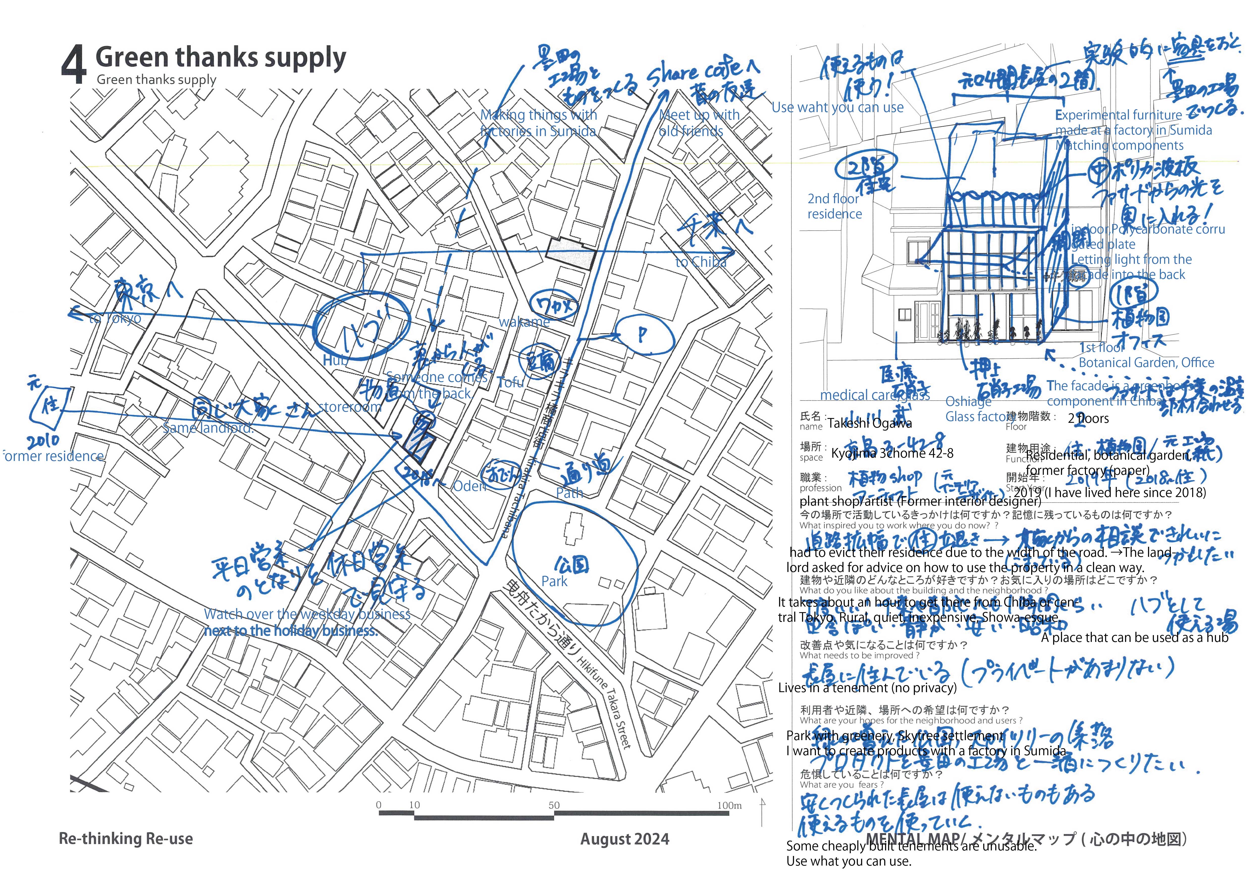 The mental mapping methodology was also used in a workshop in Sumida, Tokyo in collbaoration with Prof. Yasumori and the students of his research unit at the Chiba University. In order to maintain the typical character of the area, in this case, the methodology focused not on the buildings, but on the understanding space between them; and how shared private space in the form of alleyways, the setting of objects and open nature of the buildings create a sense of community typical to this area of Tokyo.