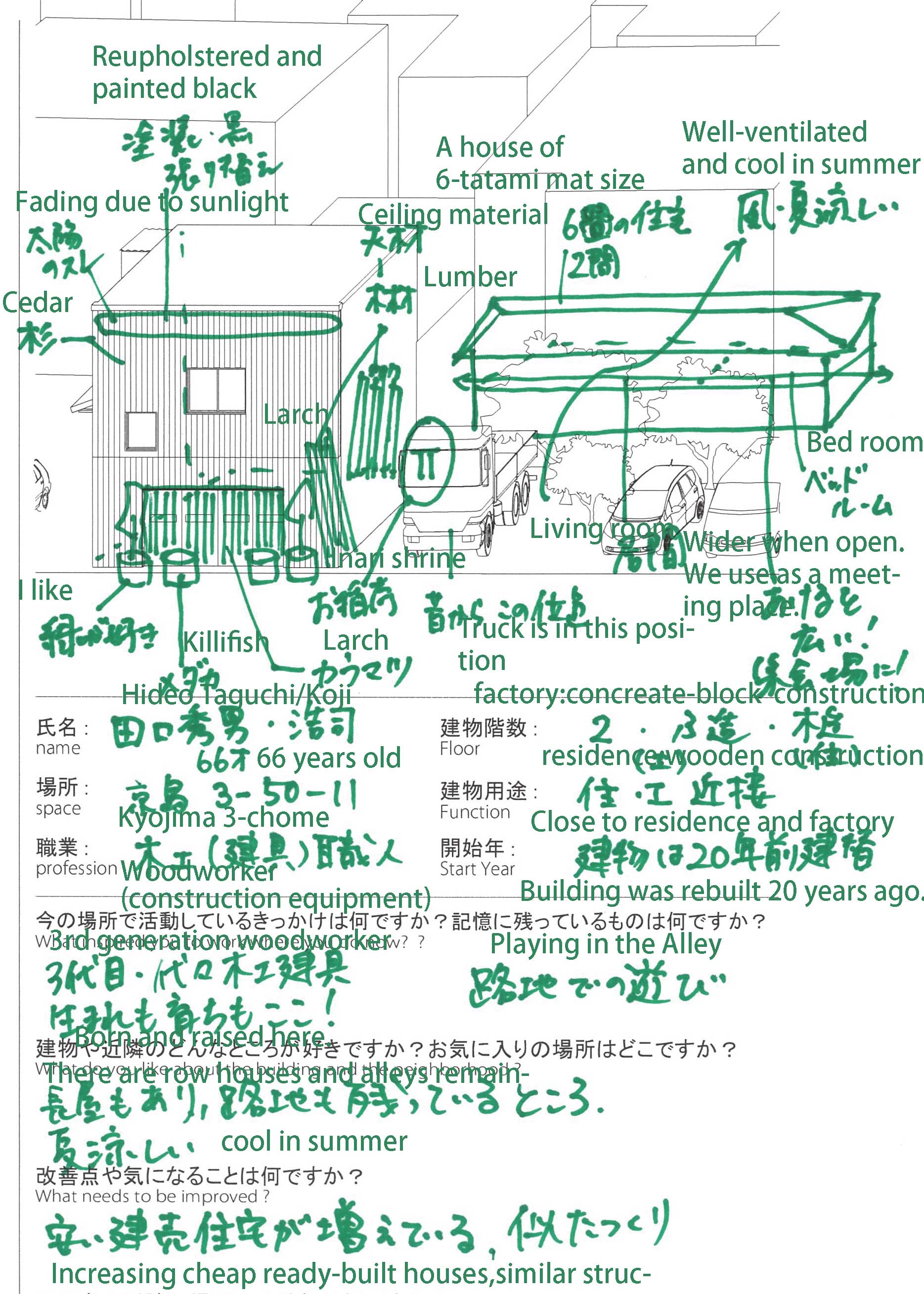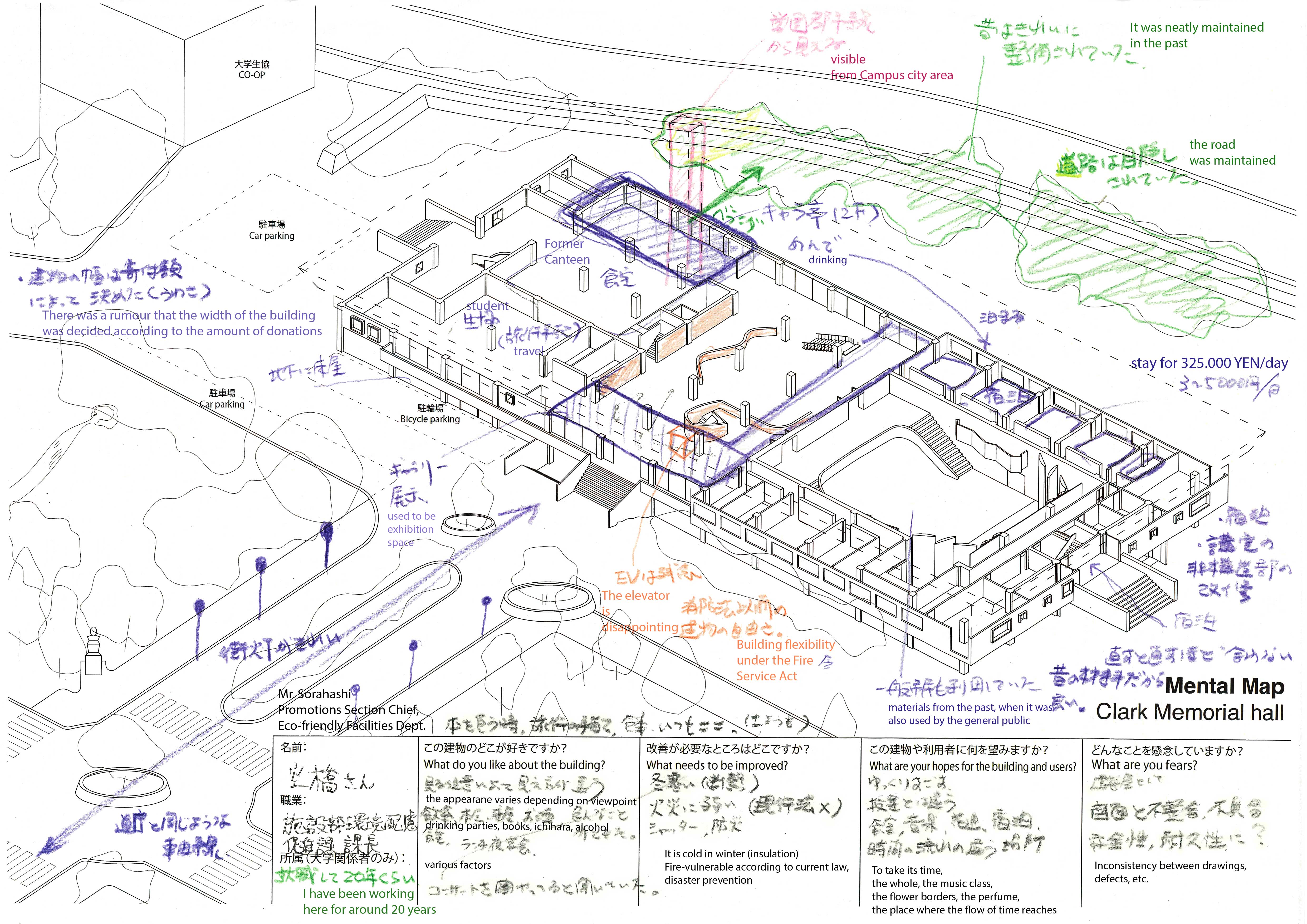 The research Re-Thinking Re-Use also shows that the built environment may appear objective, but that the experience of it is deeply personal and shaped by culture. To explore this, HOH Architecten, together with Japanese and Dutch partners, organised a series of workshops in Amsterdam, Tokyo, Sapporo and Kurashiki. Through Mental Maps (personal drawings and maps created by residents and users) existing values were uncovered that could serve as a foundation for the future development of buildings and neighbourhoods.
